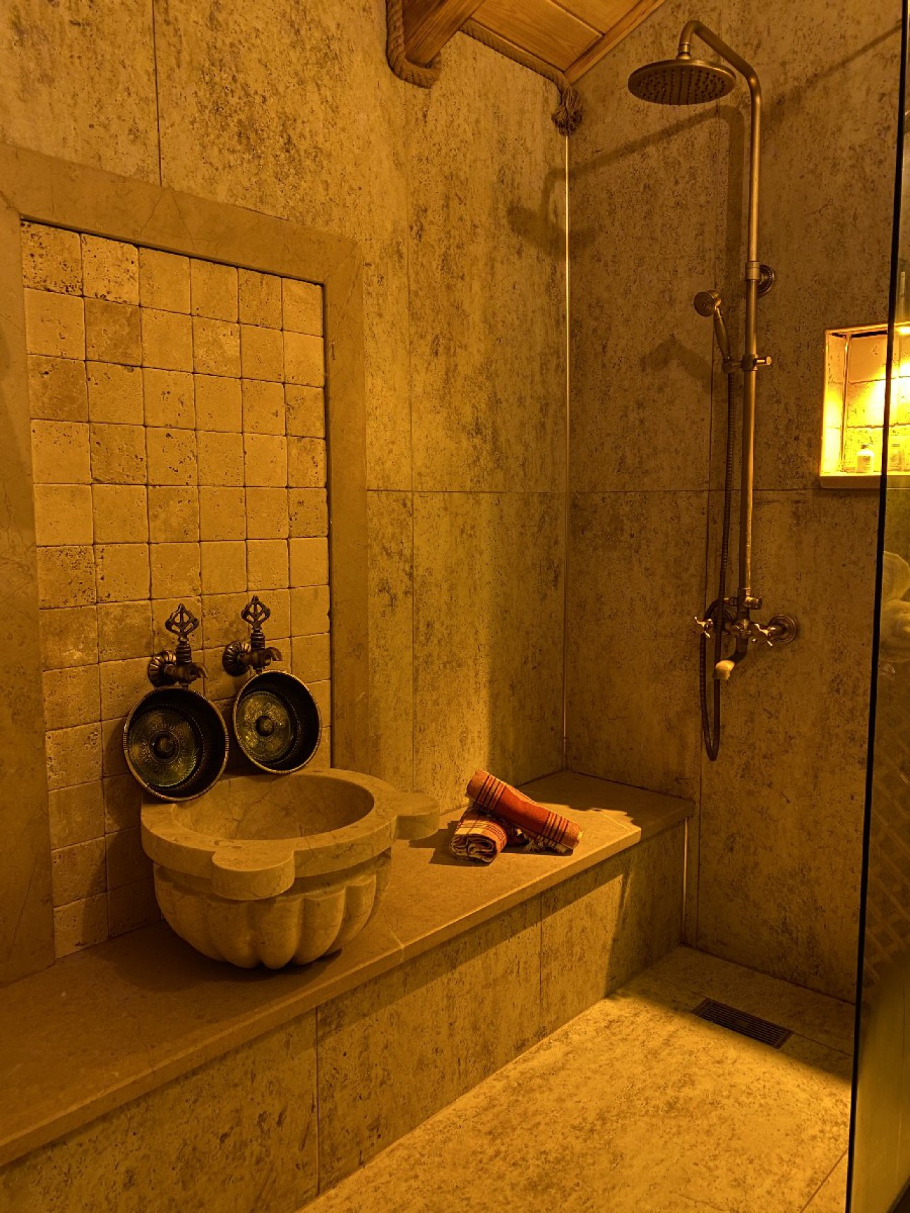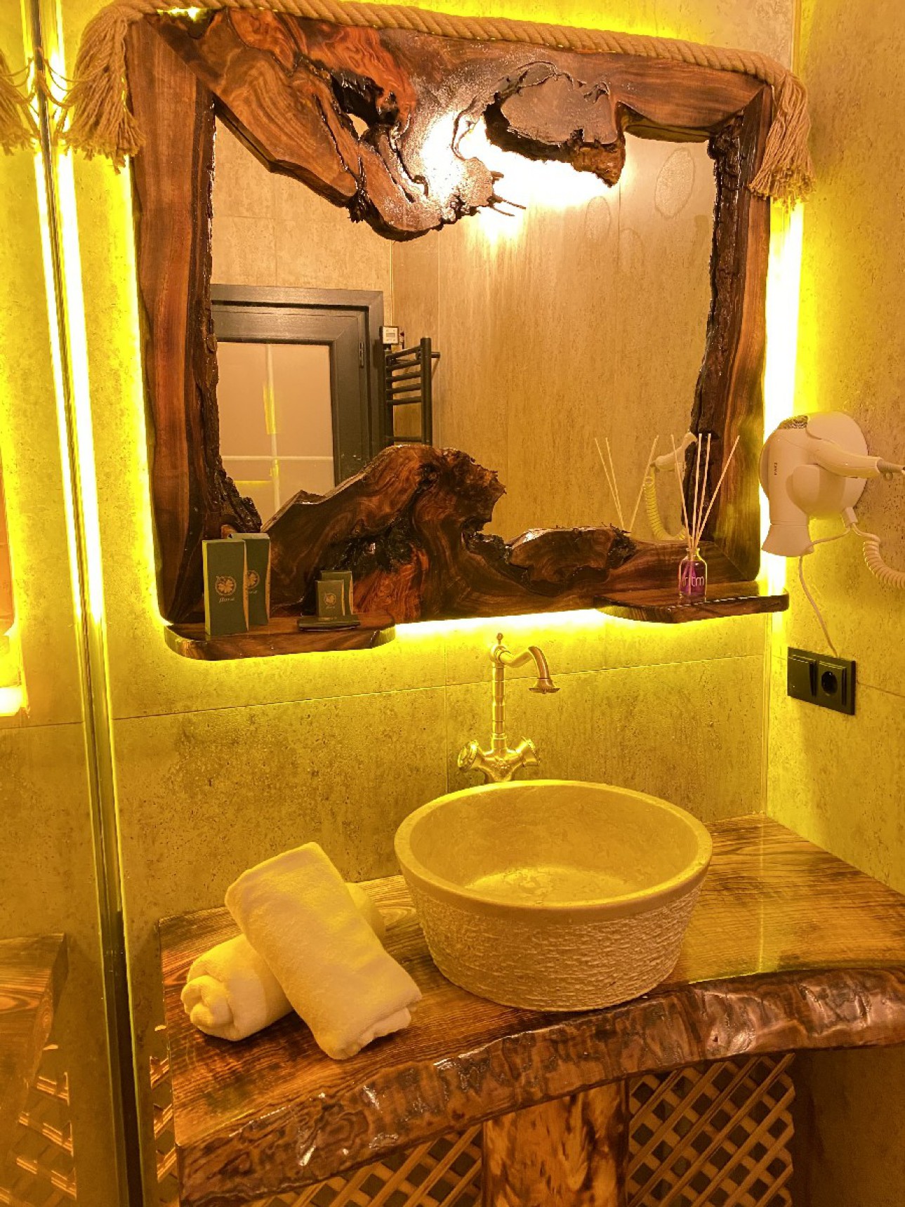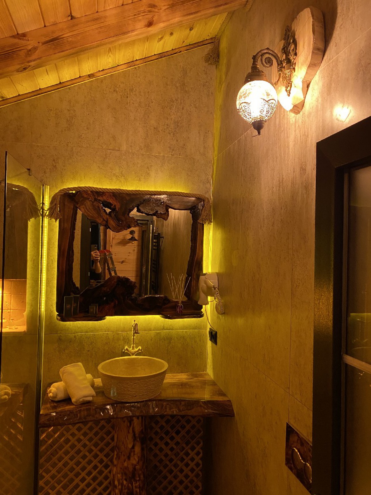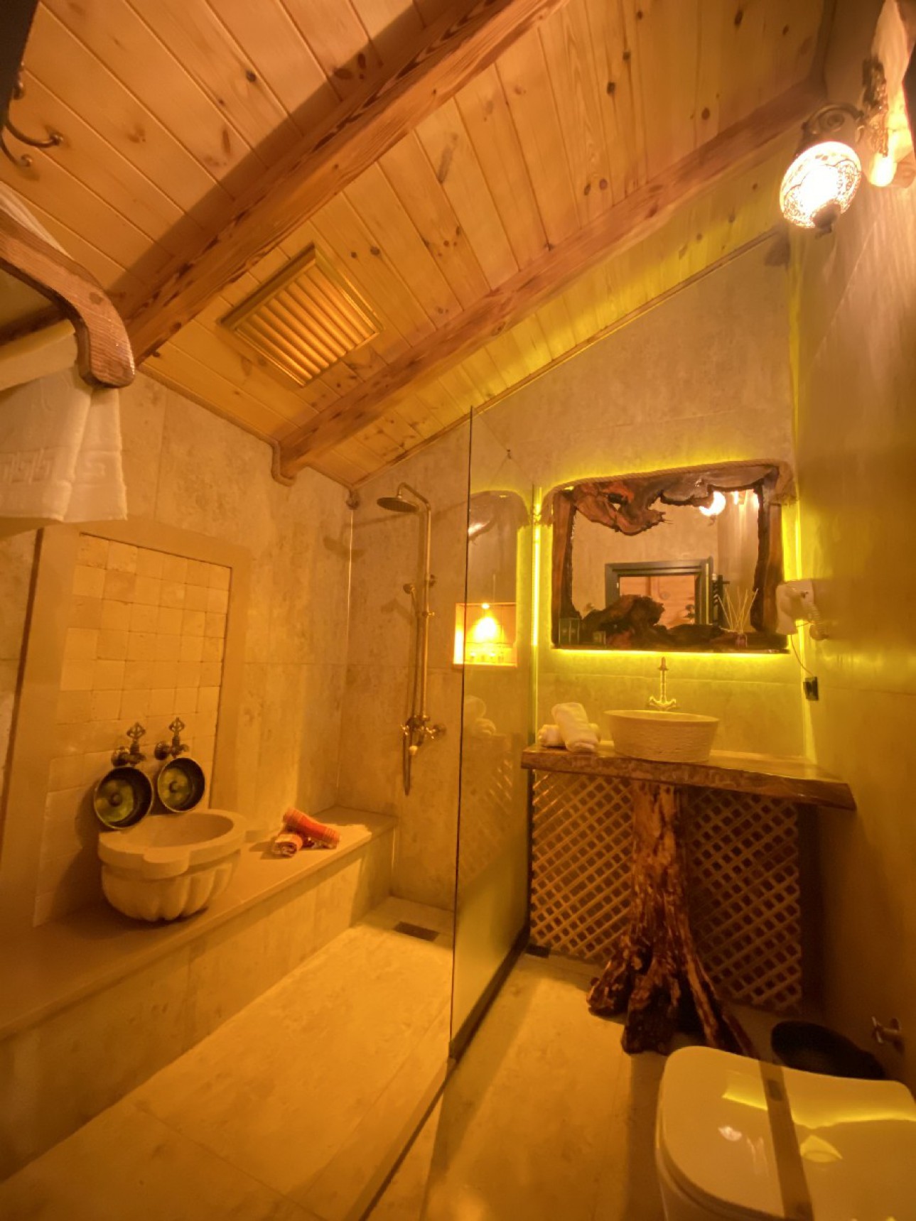 ODA GENİŞLİĞİ 55 M2'dir.ŞÖMİNE VE TÜRK HAMAMI MEVCUTTUR.ODA İÇERİSİNDE BİR ADET ÇİFT KİŞİLİK YATAK BULUNMAKTADIR. İSTEĞE GÖRE BİR ADET EK YATAK VE BİR ADET BEBEK BEŞİĞİ KONULABİLİR. KAHVALTI ODAYA SERVİS ŞEKLİNDE VERİLMEKTEDİR.