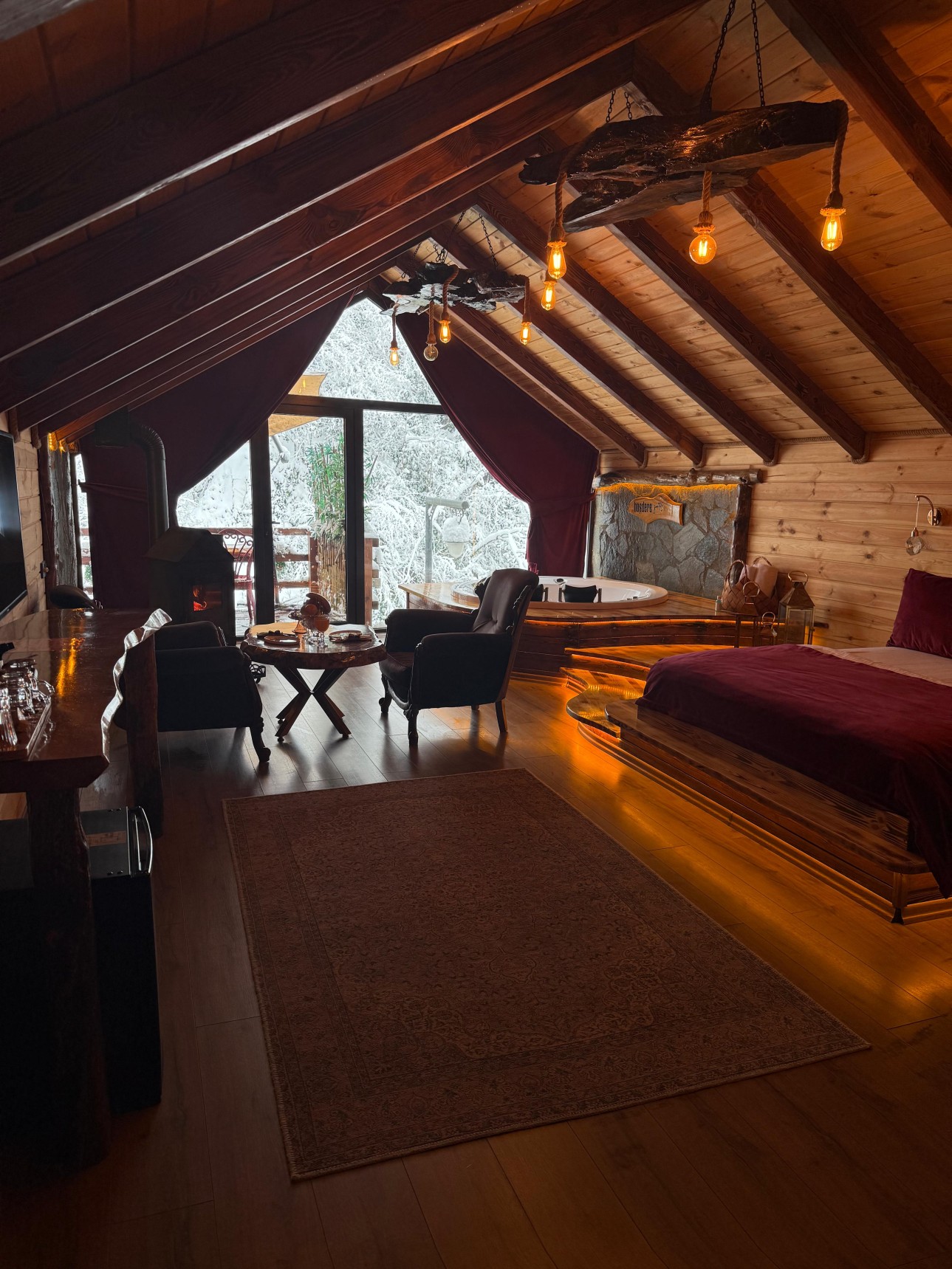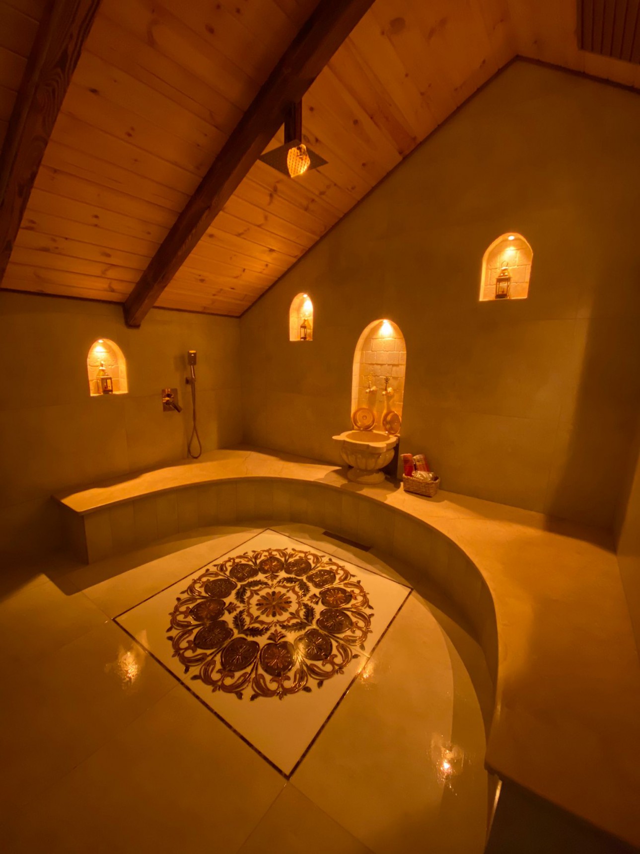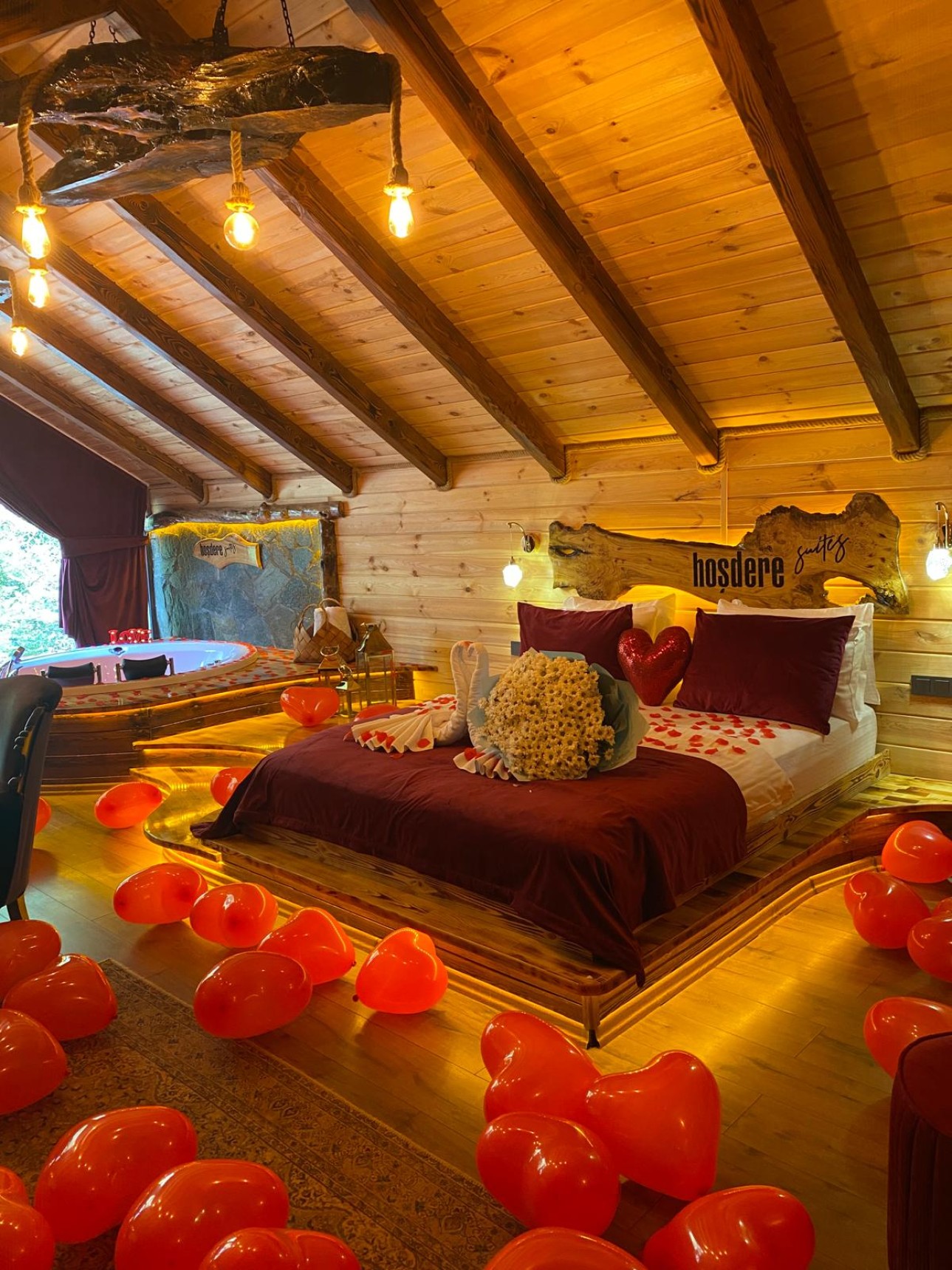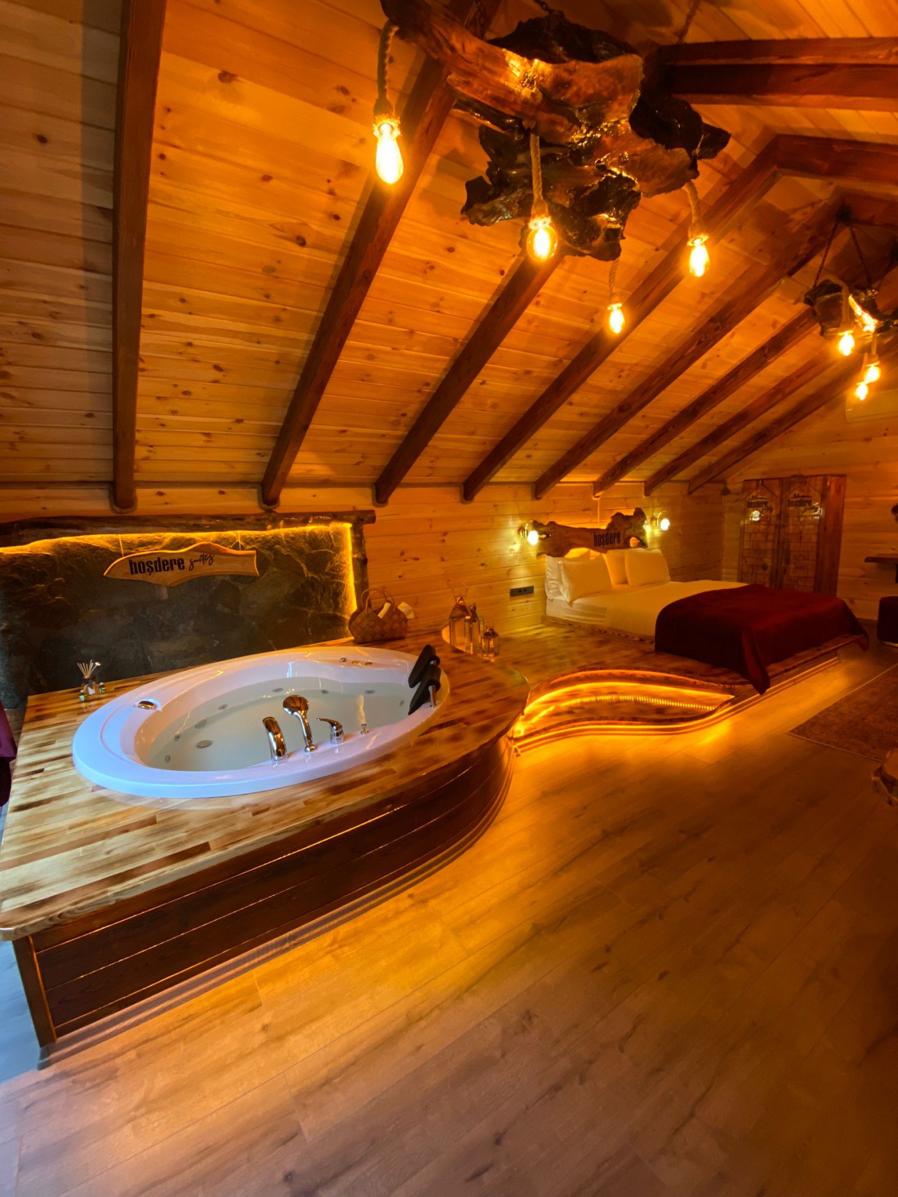 ODA GENİŞLİĞİ 75 M2'dir. JAKUZİ, ŞÖMİNE VE 15m2 TÜRK HAMAMI MEVCUTTUR.ODA İÇERİSİNDE BİR ADET ÇİFT KİŞİLİK YATAK BULUNMAKTADIR. İSTEĞE GÖRE BİR ADET EK YATAK VE BİR ADET BEBEK BEŞİĞİ KONULABİLİR. KAHVALTI ODAYA SERVİS ŞEKLİNDE VERİLMEKTEDİR.